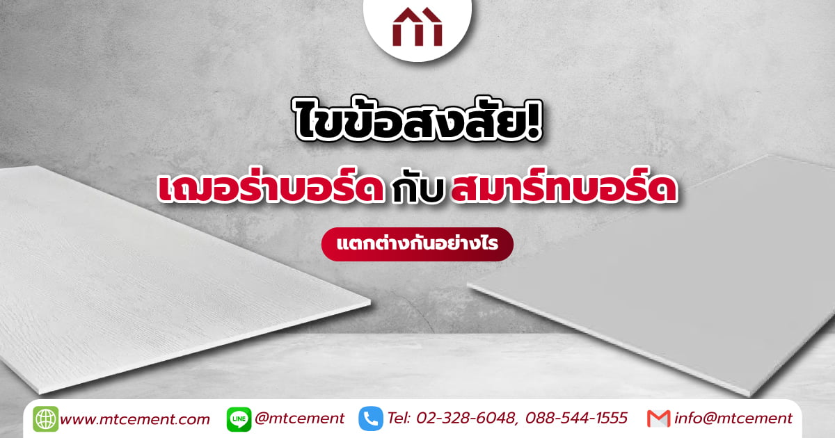 วันนี้ทาง MTcement เลยจะมาเปรียบเทียบความแตกต่างระหว่าง เฌอร่าบอร์ด และ สมาร์ทบอร์ด ในด้านรูปลักษณ์ภายนอก คุณสมบัติ รวมถึงแนวทางการเลือกใช้งาน ซึ่งแต่ละประเภทจะมีความแตกต่างกันในด้านใดบ้างมาดูกันเลย!