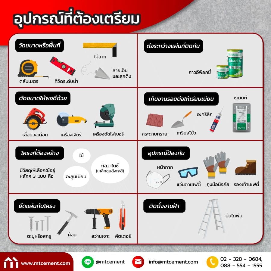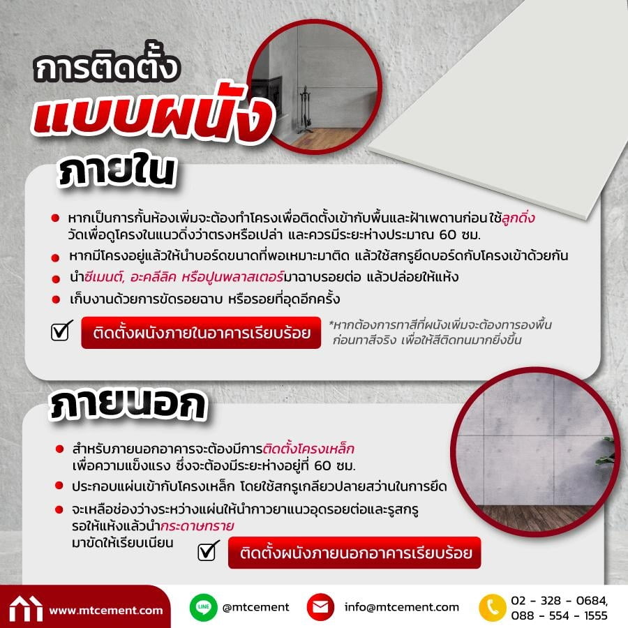 แนะนำให้ติดต่อช่าง หรือผู้รับเหมา ให้มาประกอบติดตั้งซีเมนต์บอร์ดให้จะดีที่สุด เพราะเขาจะมีอุปกรณ์หรือเครื่องมือที่ครบครัน และมาพร้อมกับประสบการณ์ความชำนาญ ทำให้งานออกมาสวยงาม และเรียบร้อยอย่างแน่นอน และหากคุณกำลังมองหาแผ่นซีเมนต์บอร์ดที่เหมาะสมและสวยงามกับบ้านและงานของคุณ แต่ยังไม่รู้ว่าจะหาซื้อหรือปรึกษาได้จากที่ไหน ให้ MTcement ช่วยคุณ!!